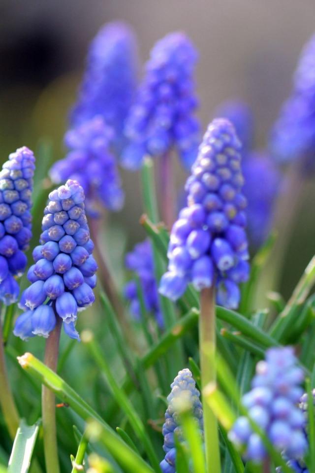 Wallpaper Blue Muscari Flowers in the Sun