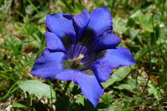 Wallpaper Beautiful blue-eyed cat is sitting on the green grass in green leaves.