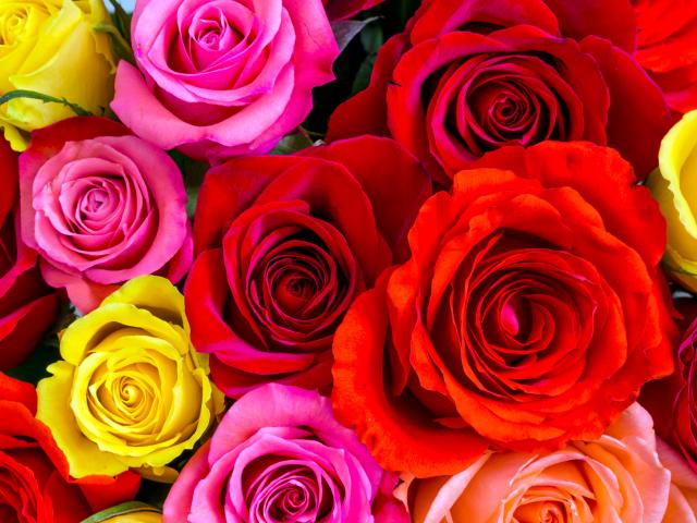 Wallpaper Bouquet of beautiful multi-colored roses close-up