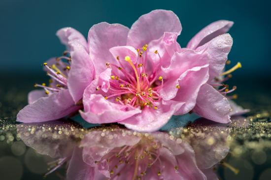 Wallpaper Pink flowers reflected in the surface