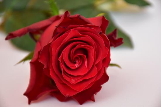 Wallpaper Scarlet rose in dew drops on a white table