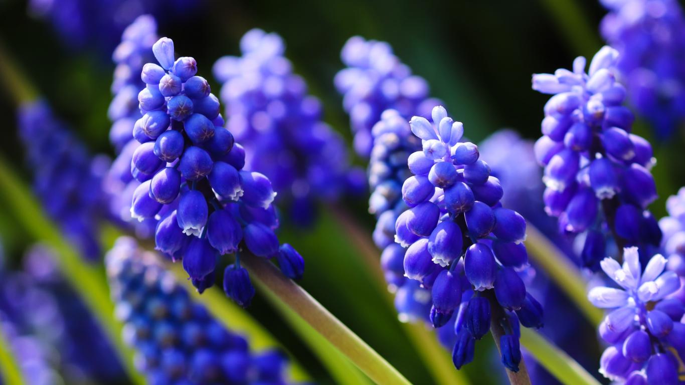 Wallpaper Little blue muscari flowers in the sun
