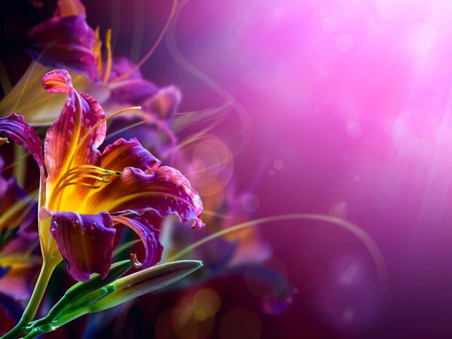 Wallpaper Bouquet of tender pink lilies in a glass vase on a white background