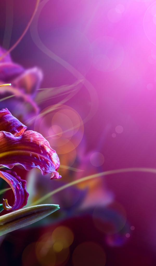 Wallpaper Bouquet of tender pink lilies in a glass vase on a white background