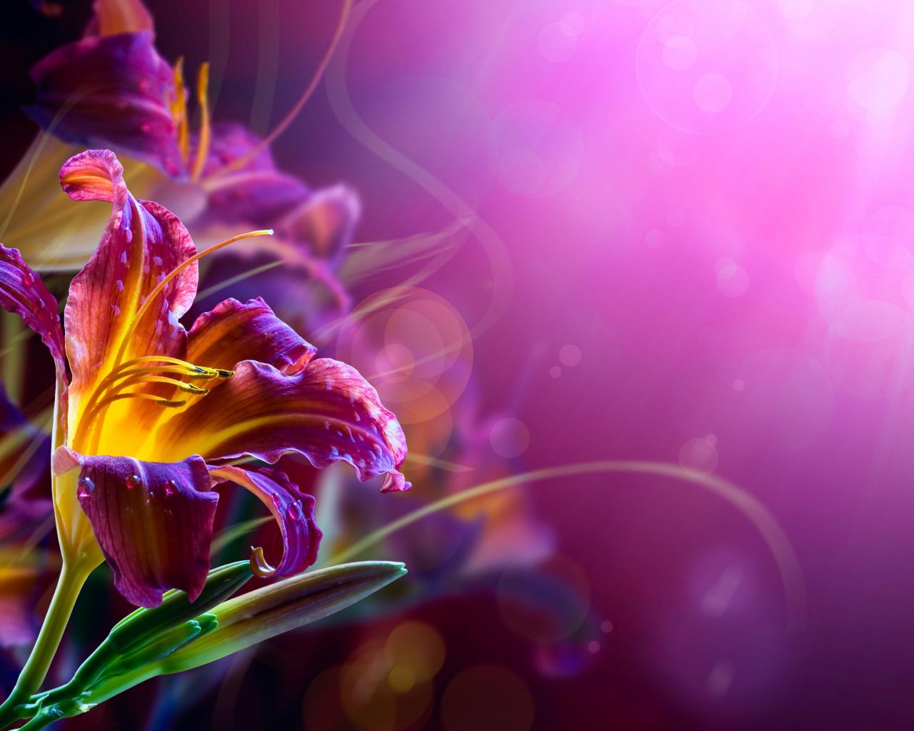 » Wallpaper Pink lilies on a blurry background