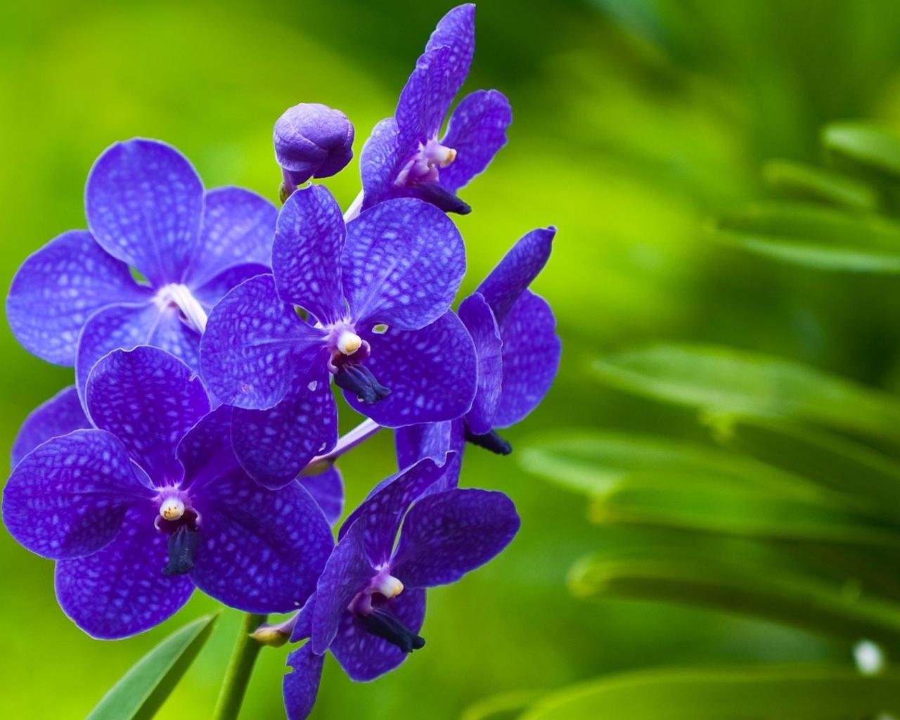 Wallpaper Purple orchid flowers on a green background