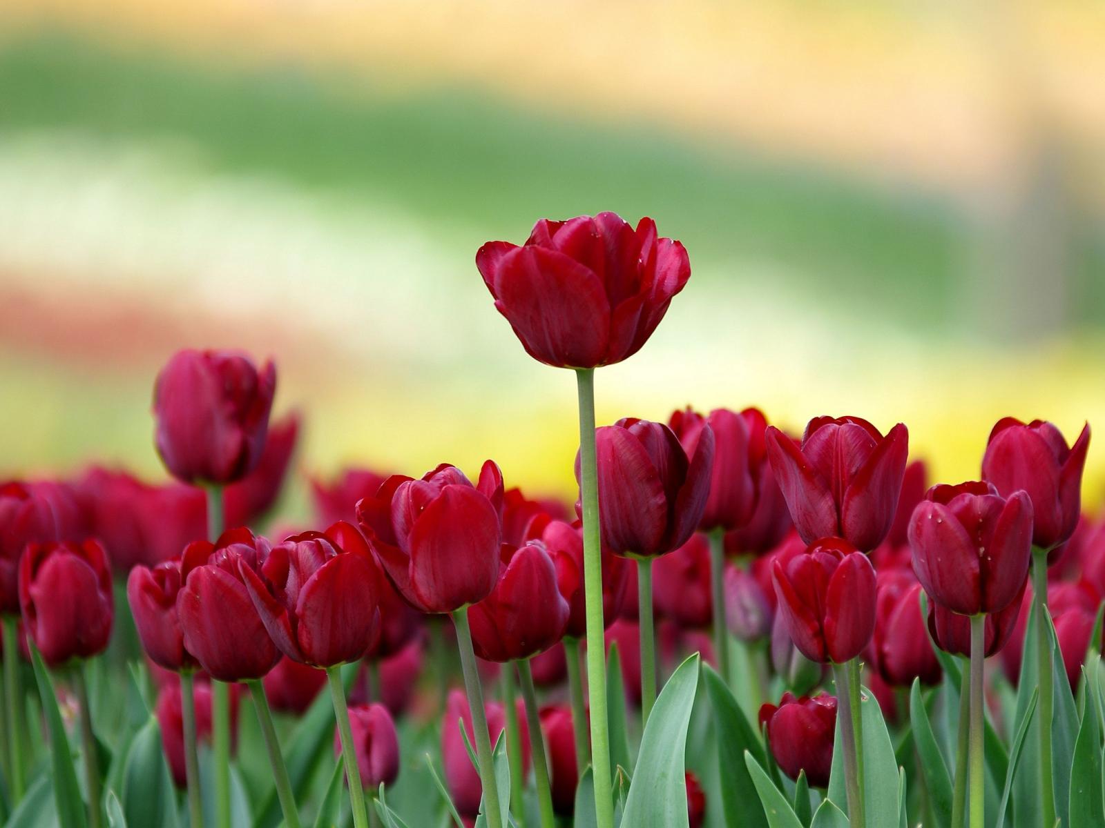 Wallpaper Beautiful burgundy tulips in the flowerbed