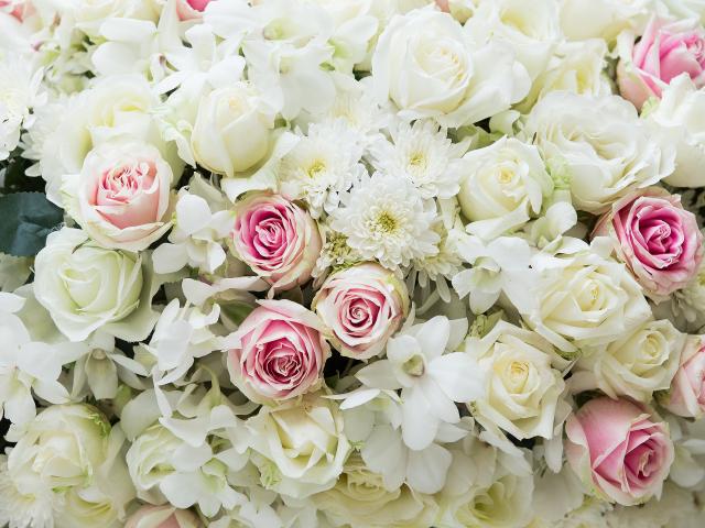 Wallpaper Bouquet of pink and white roses with chrysanthemum flowers