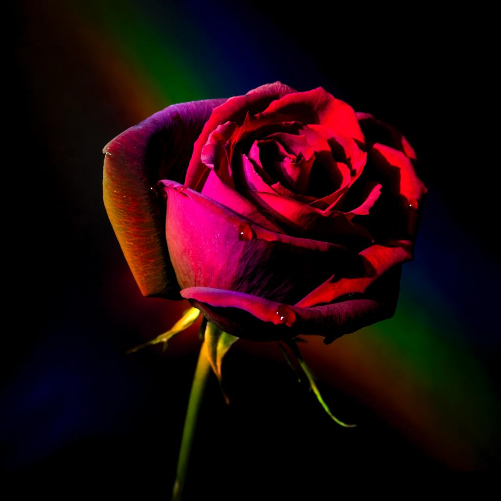 Wallpaper Red rose with rainbow background