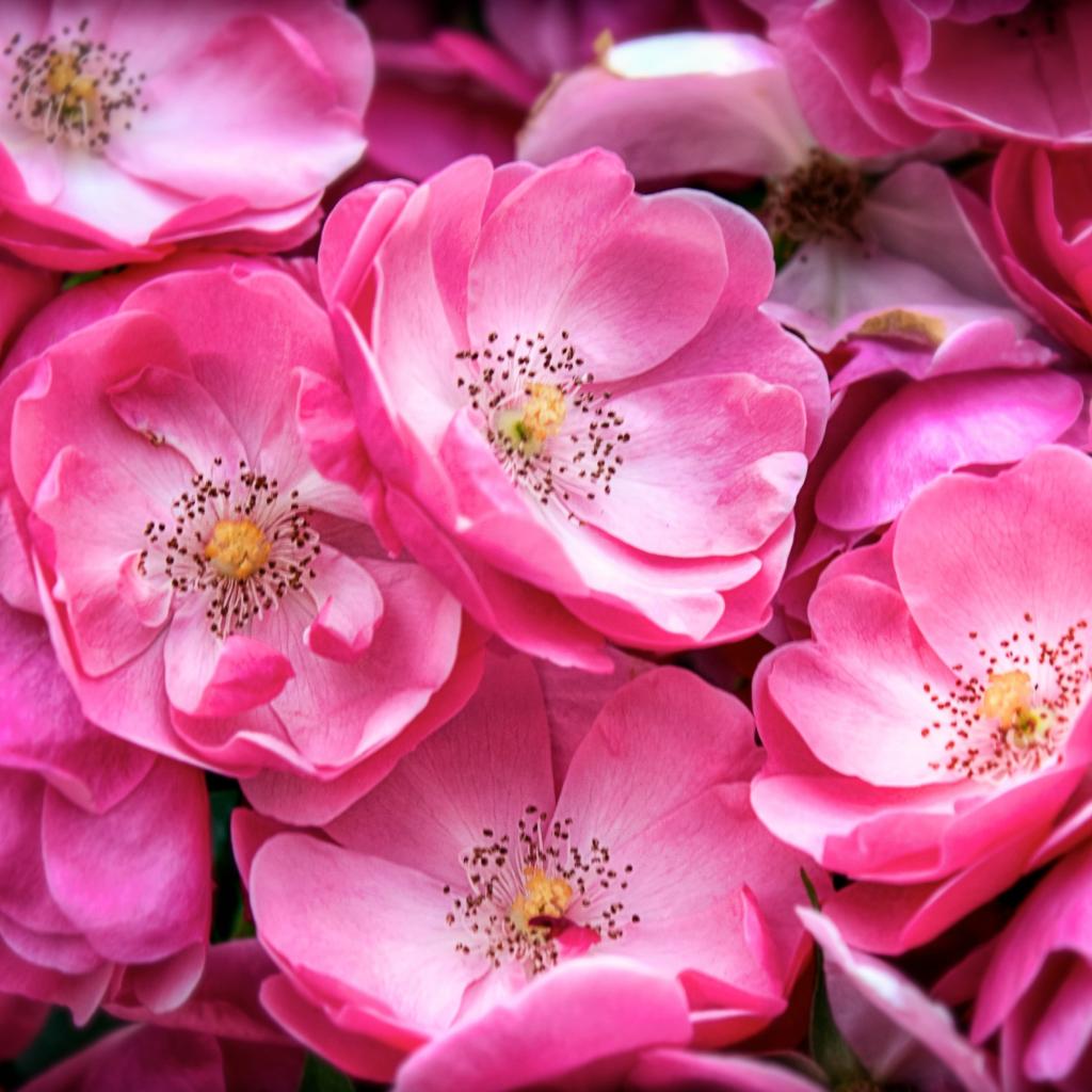 Wallpaper Pink flowers of a park rose close-up