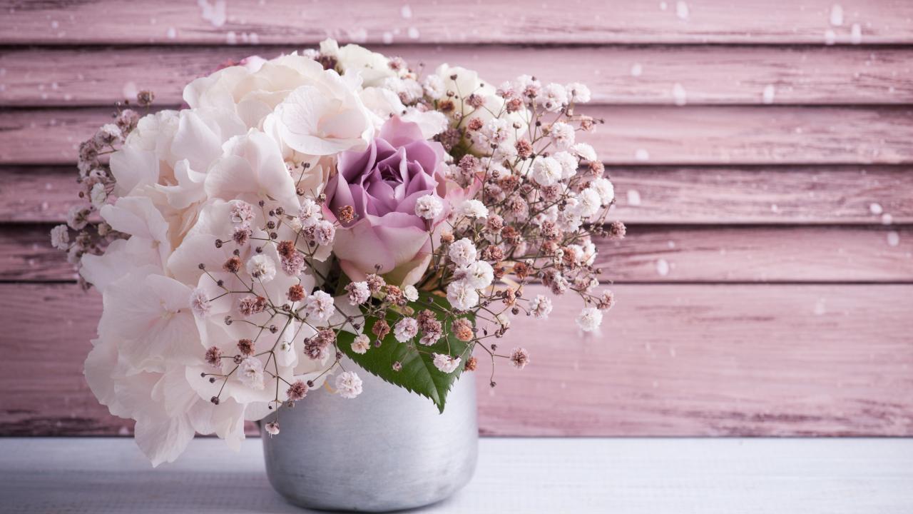 Wallpaper Bouquet with flowers phlox and roses in a vase on the table