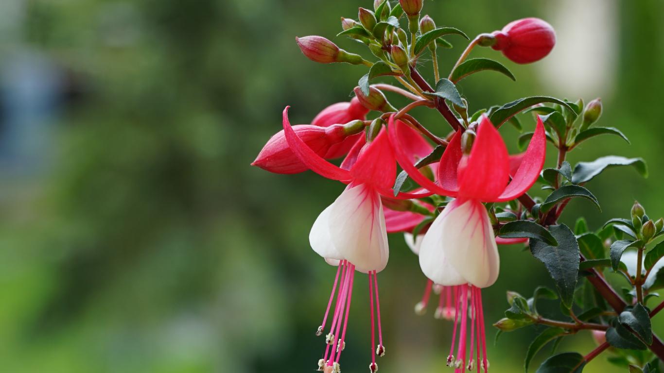 Wallpaper Pink fuchsia flowers with buds on a branch