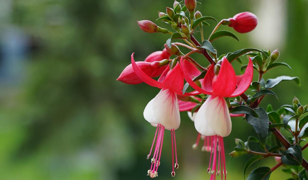 Wallpaper Pink fuchsia flowers with buds on a branch