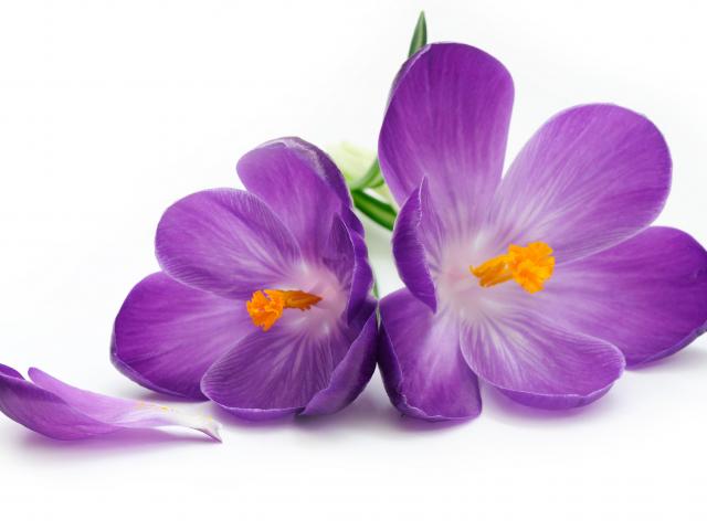 Wallpaper Lilac crocuses on a white background close-up