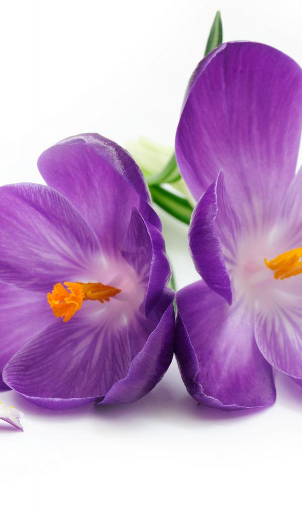 Wallpaper Lilac crocuses on a white background close-up