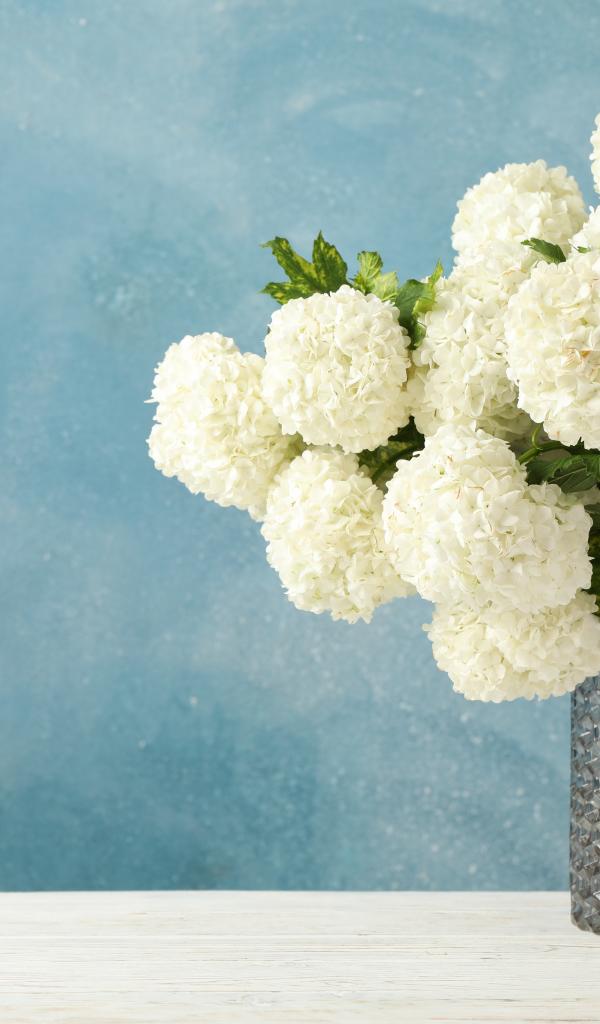 Wallpaper White hydrangea flowers in a glass vase on the table