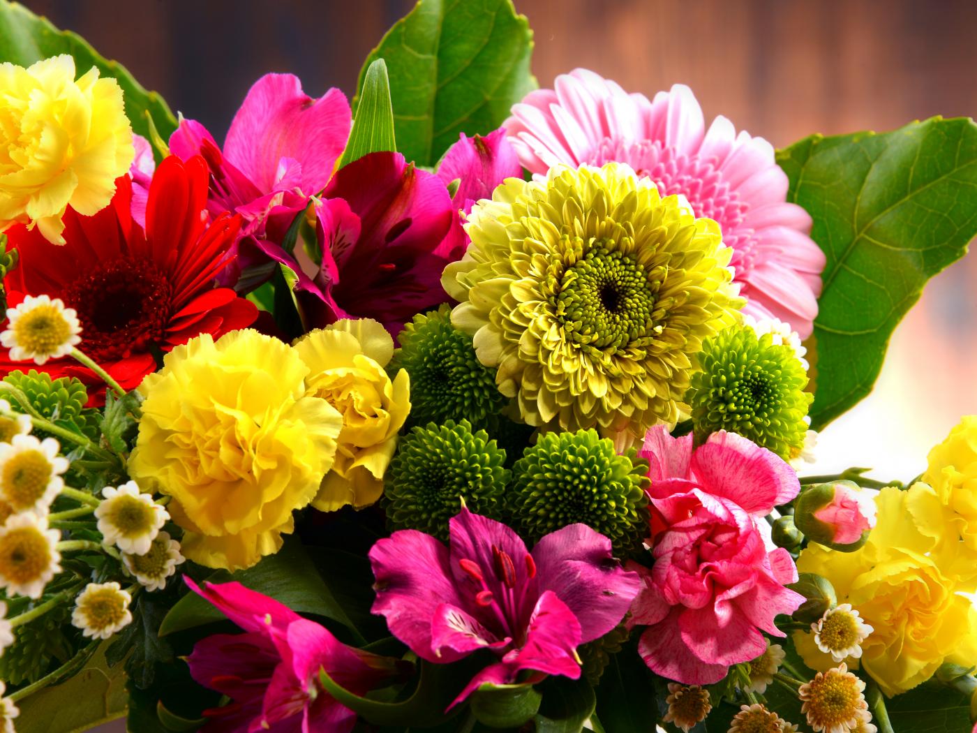 Wallpaper Bouquet with various flowers close-up