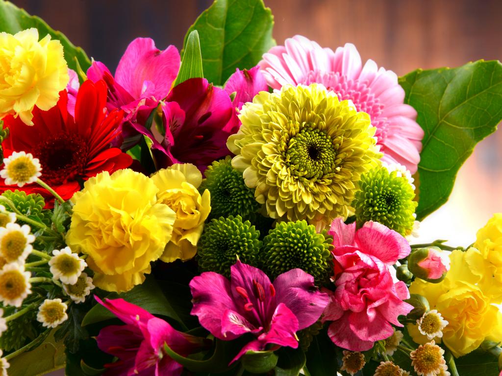 Wallpaper Bouquet with various flowers close-up