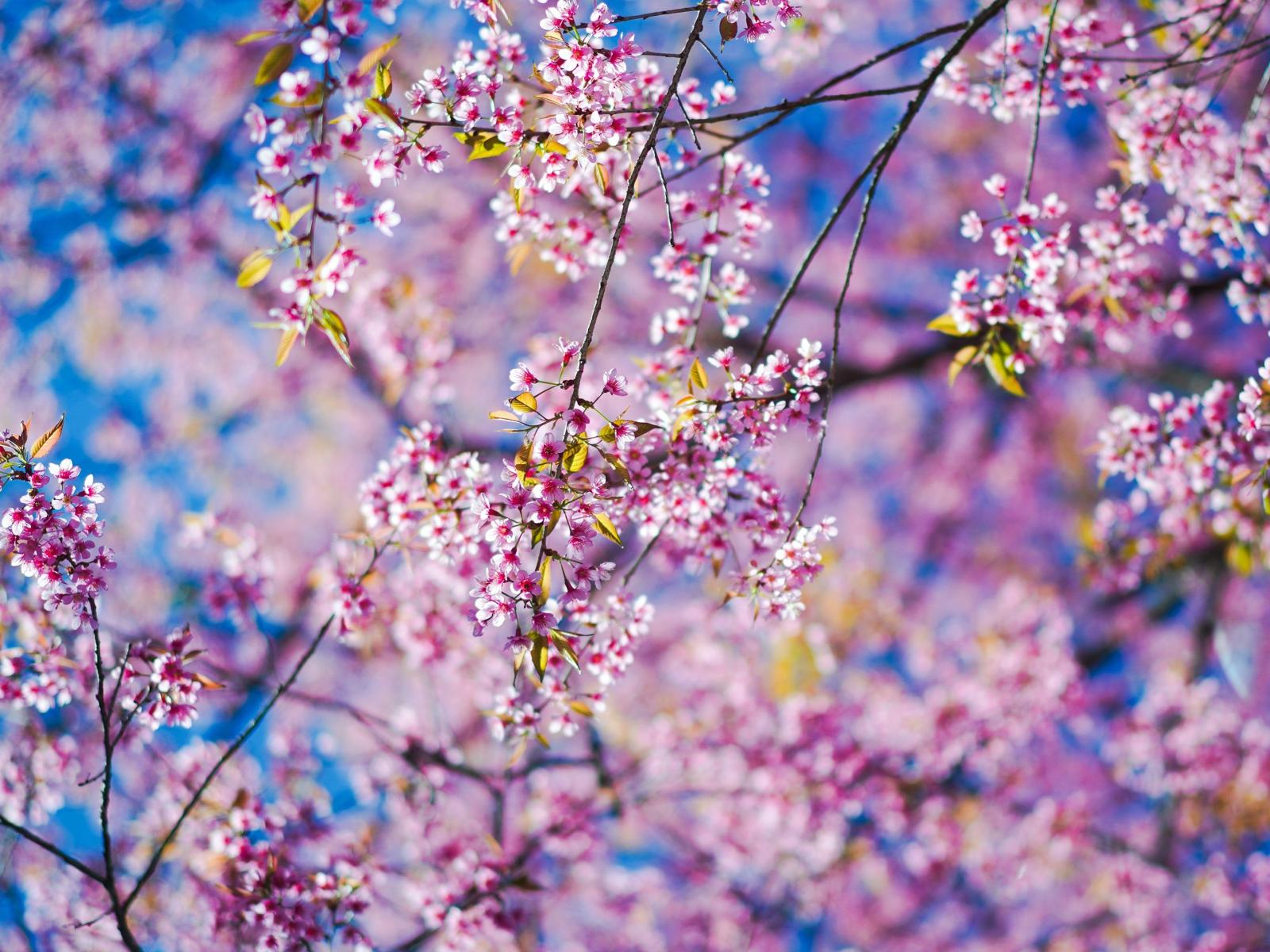 Wallpaper Little pink sakura flowers on branches in the sun