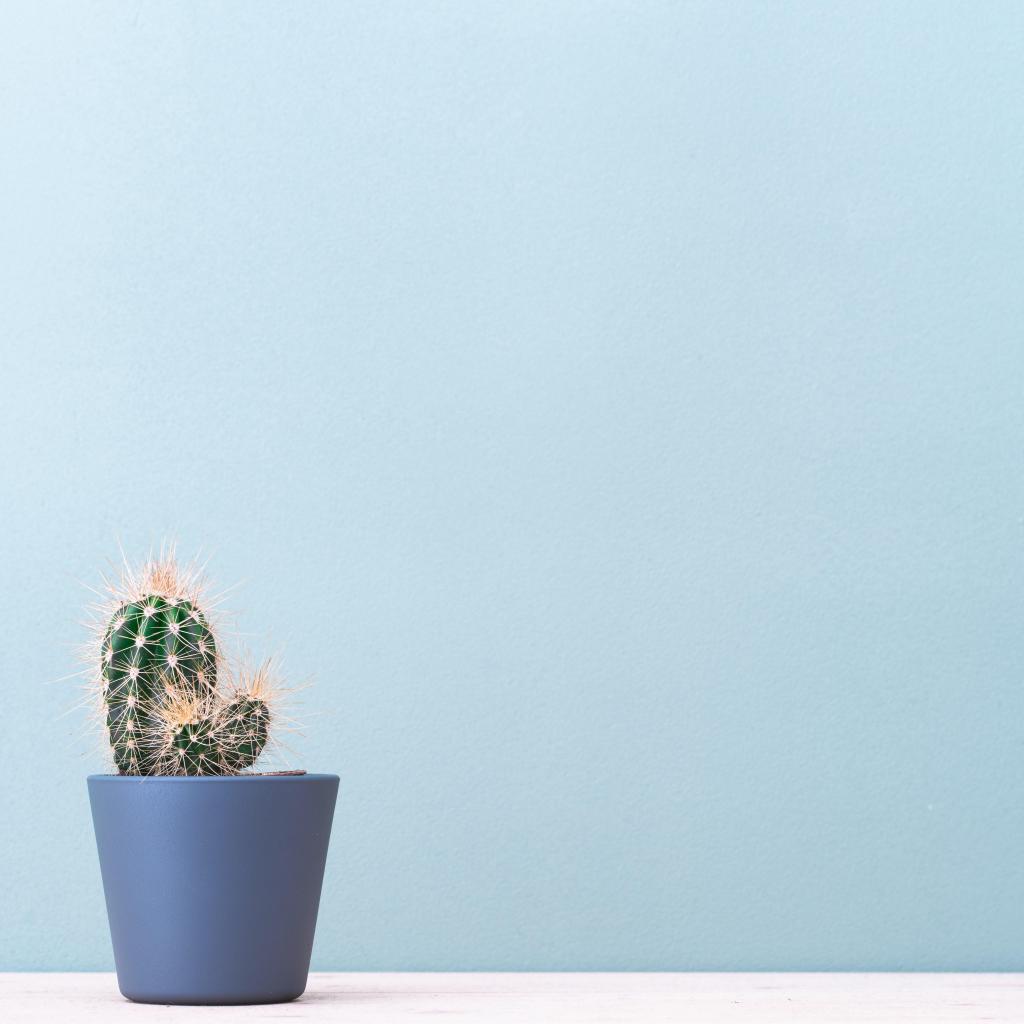 Wallpaper Prickly pear cactus in a pot on a blue background