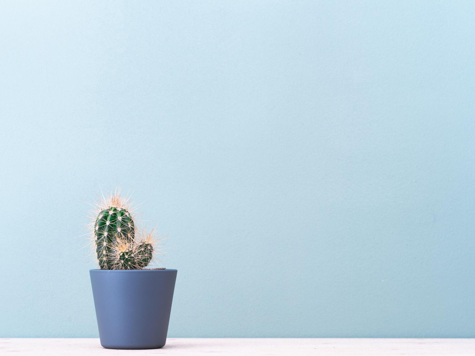 Wallpaper Prickly pear cactus in a pot on a blue background