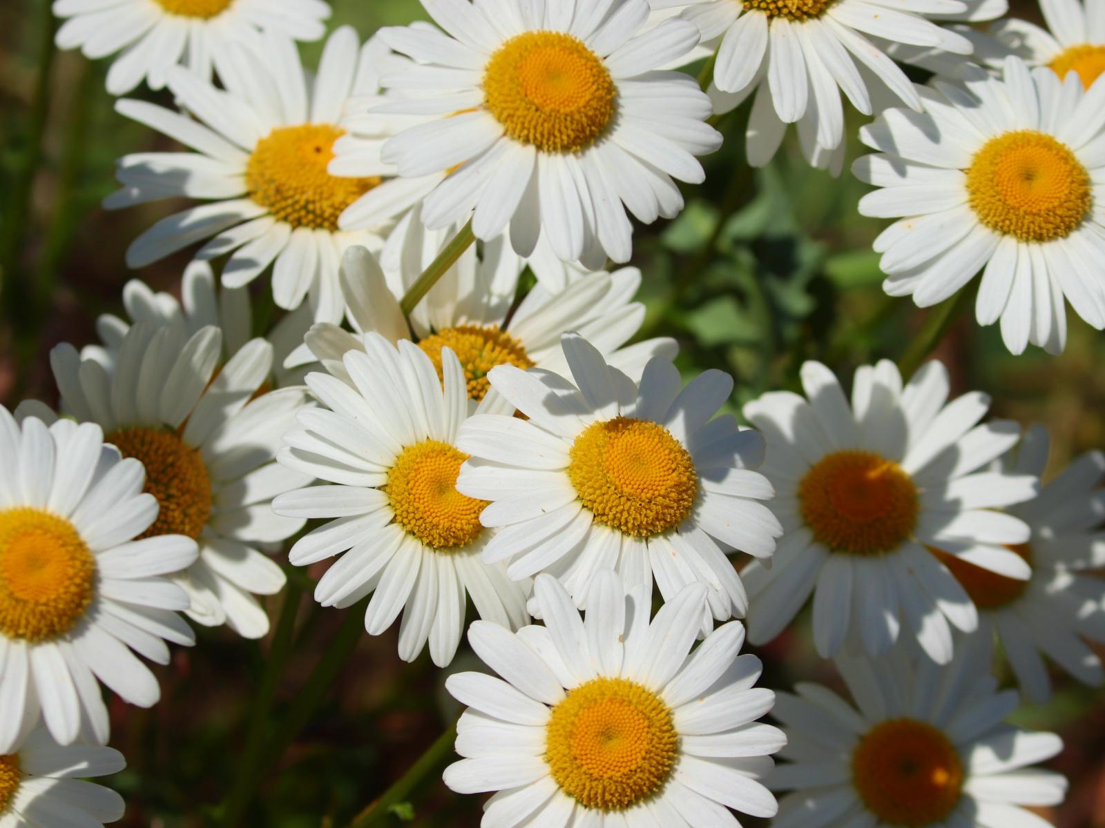 Wallpaper Delicate white daisies with a yellow center in the sun
