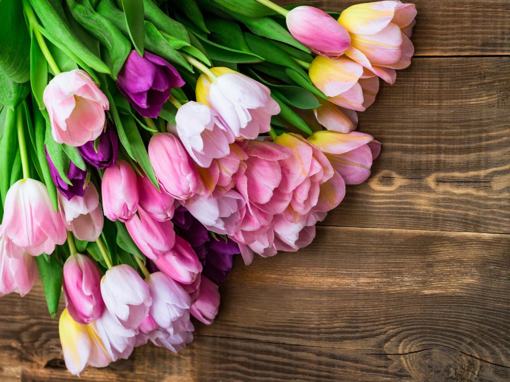 Wallpaper Bouquet of pink tulips on a wooden background