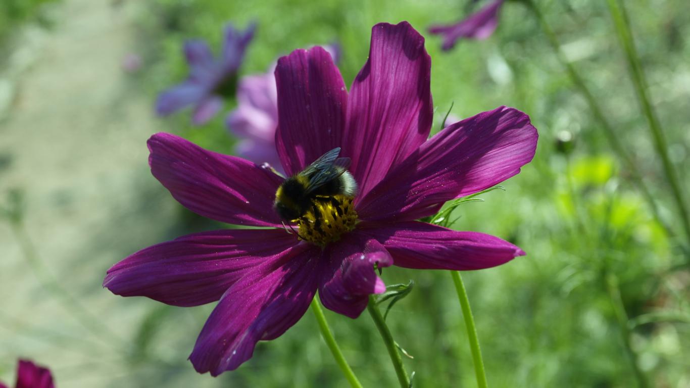 » Wallpaper Purple Cosmea Flower with Bumblebee