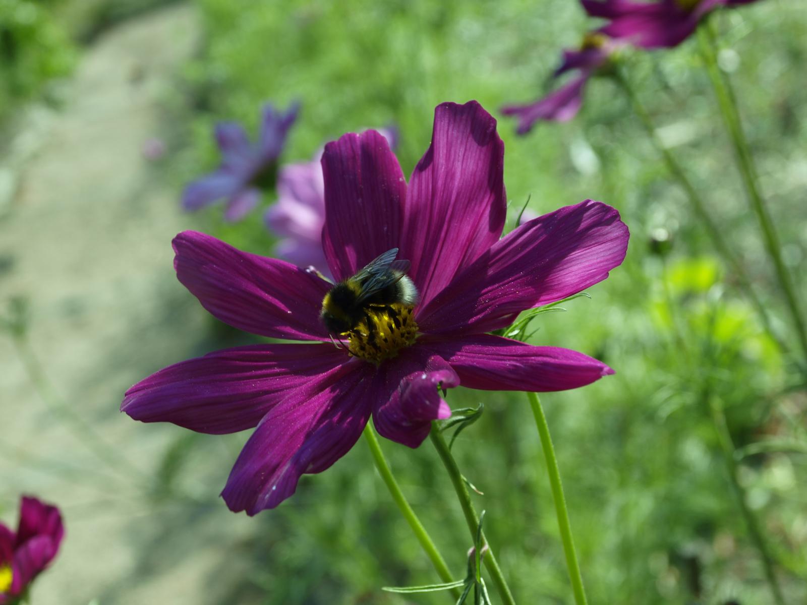 » Wallpaper Purple Cosmea Flower with Bumblebee