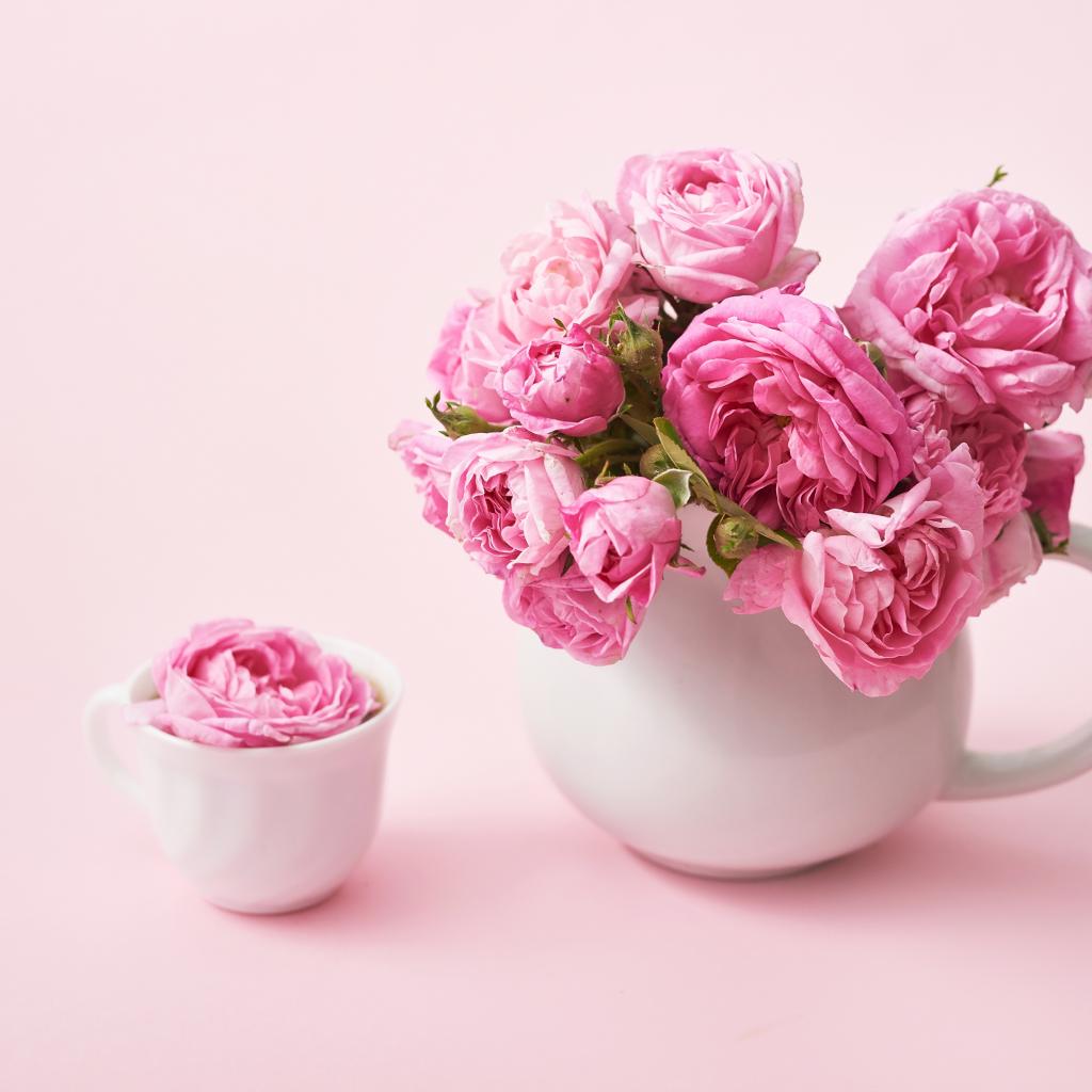 Wallpaper Bouquet of pink roses in a white jug on the table
