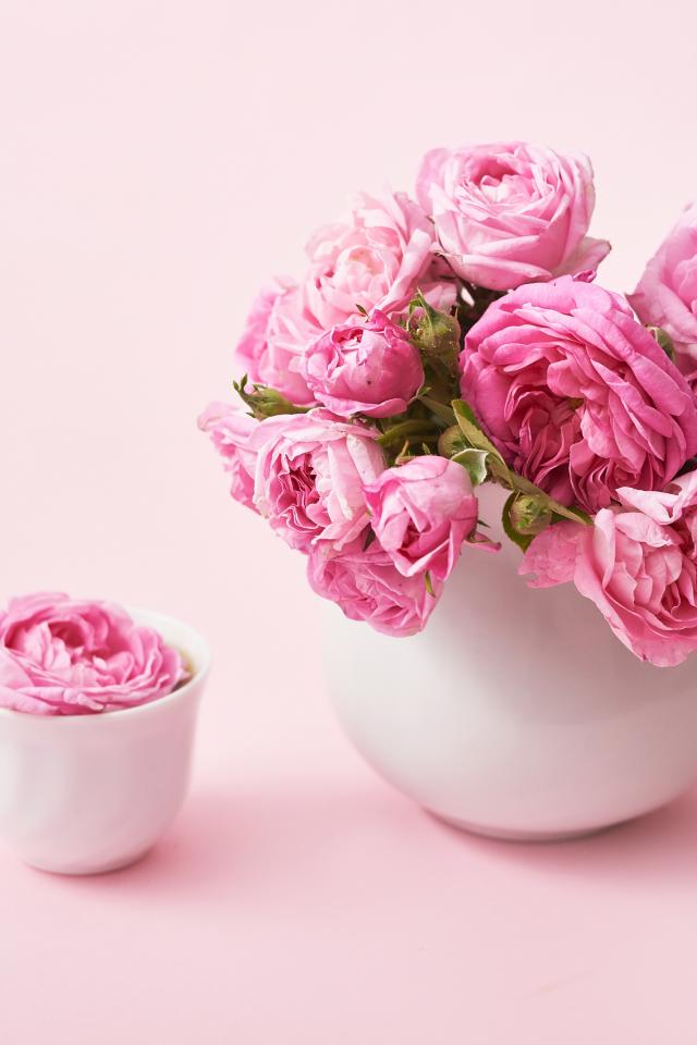 Wallpaper Bouquet of pink roses in a white jug on the table