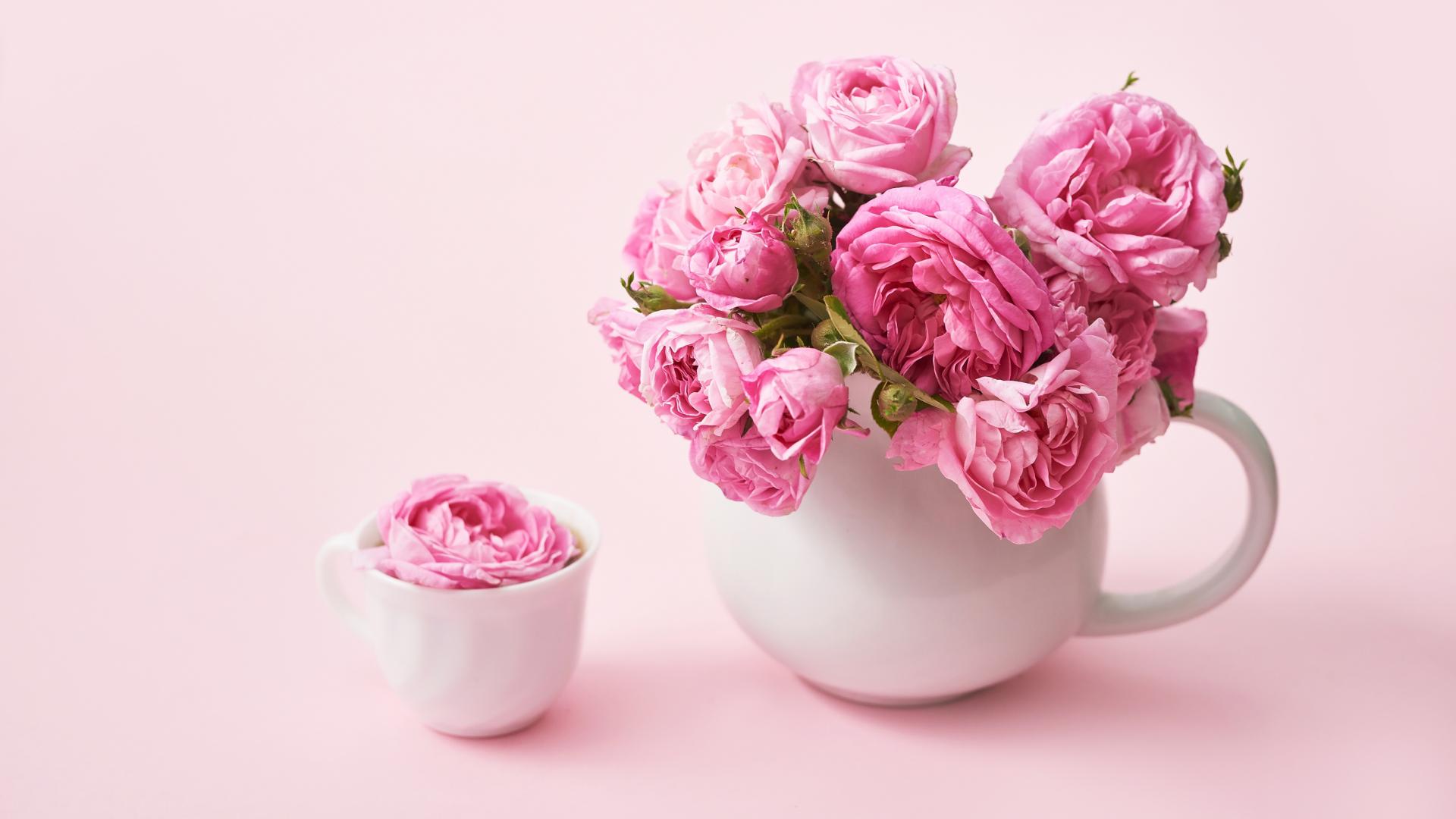 Wallpaper Bouquet of pink roses in a white jug on the table