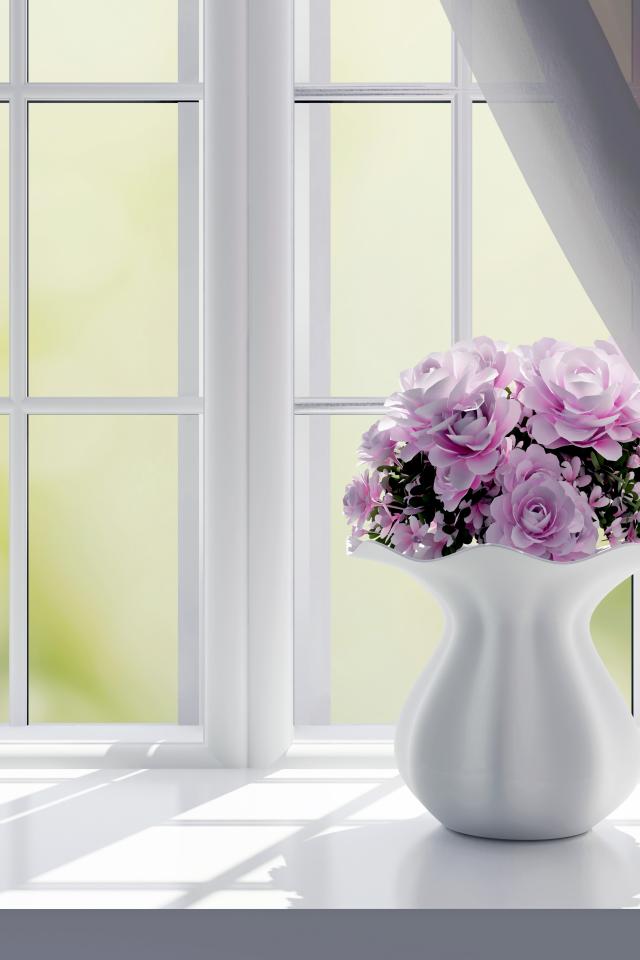 Wallpaper Bouquet of pink roses in a white vase on the window
