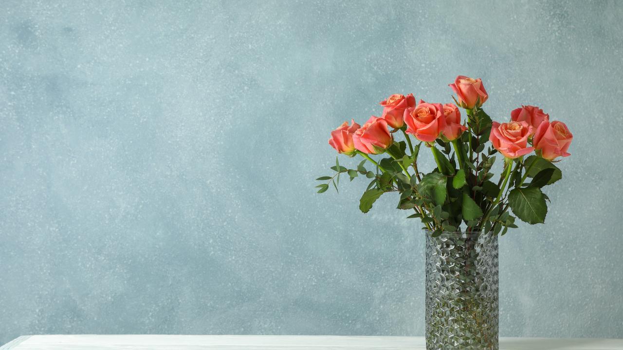 Wallpaper Bouquet of roses in a glass vase on a gray background