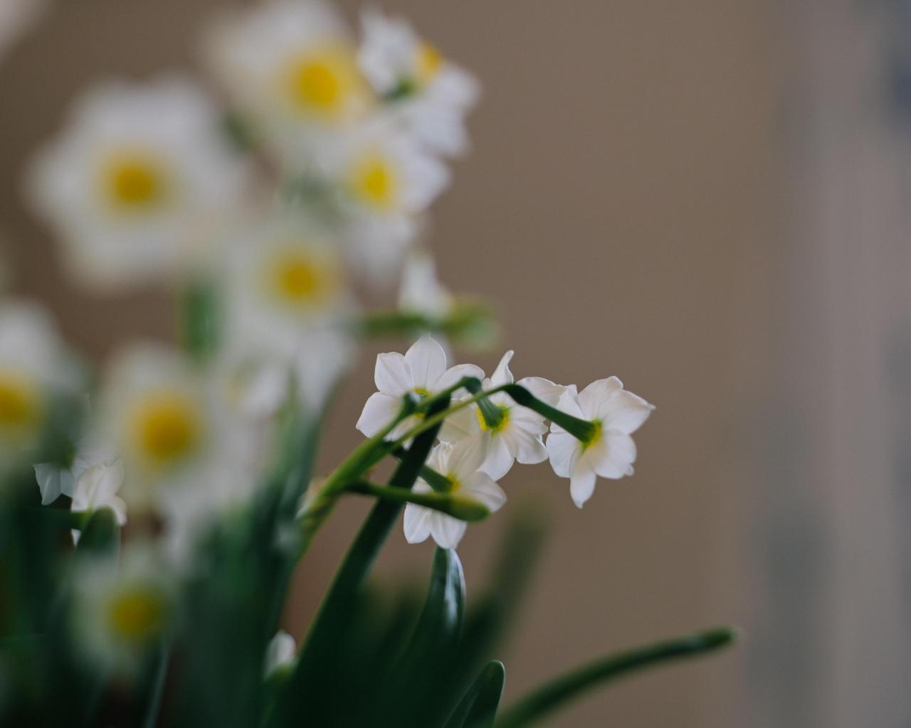 Wallpaper Little white daffodils on a blurry background