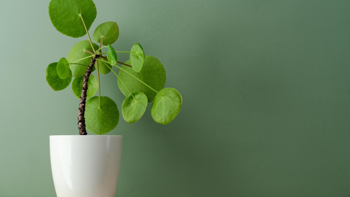 Wallpaper Indoor flower in a white pot against the wall