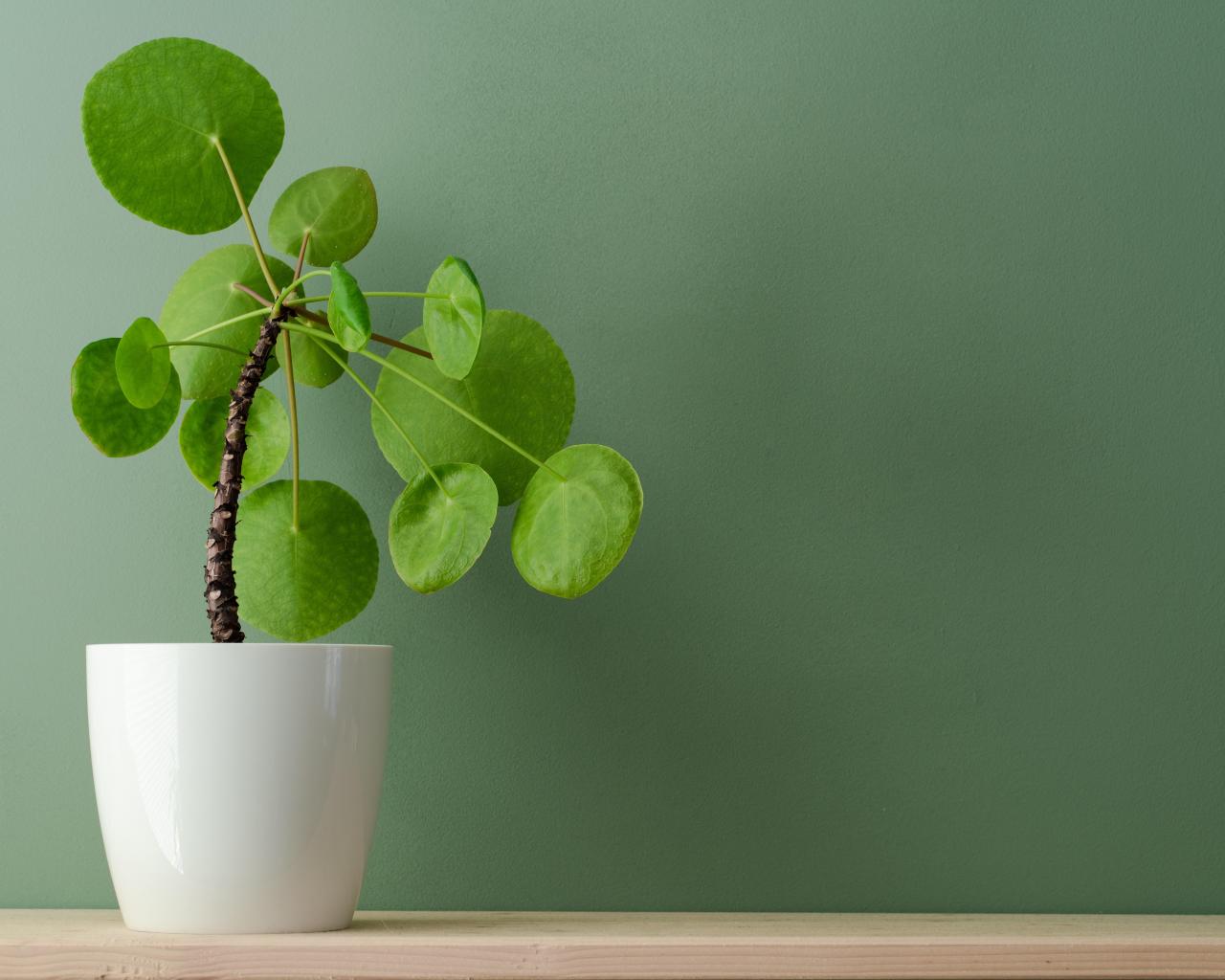 Wallpaper Indoor flower in a white pot against the wall