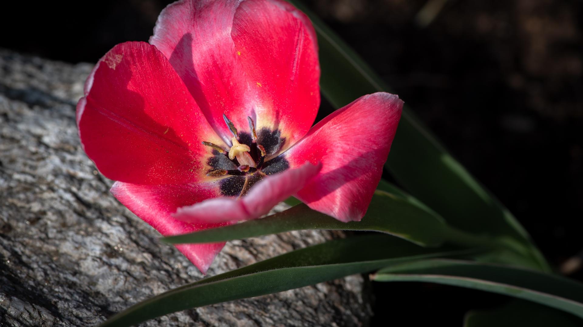 Wallpaper A pink tulip with the sun lies on a stone