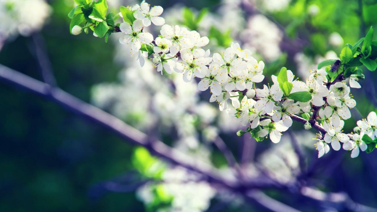 Wallpaper White cherry flowers on a branch close-up
