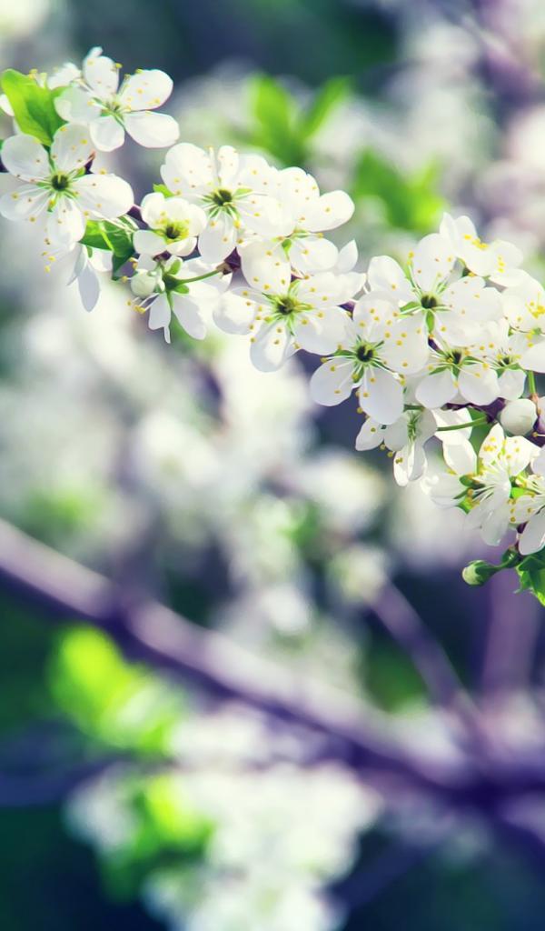 Wallpaper White cherry flowers on a branch close-up
