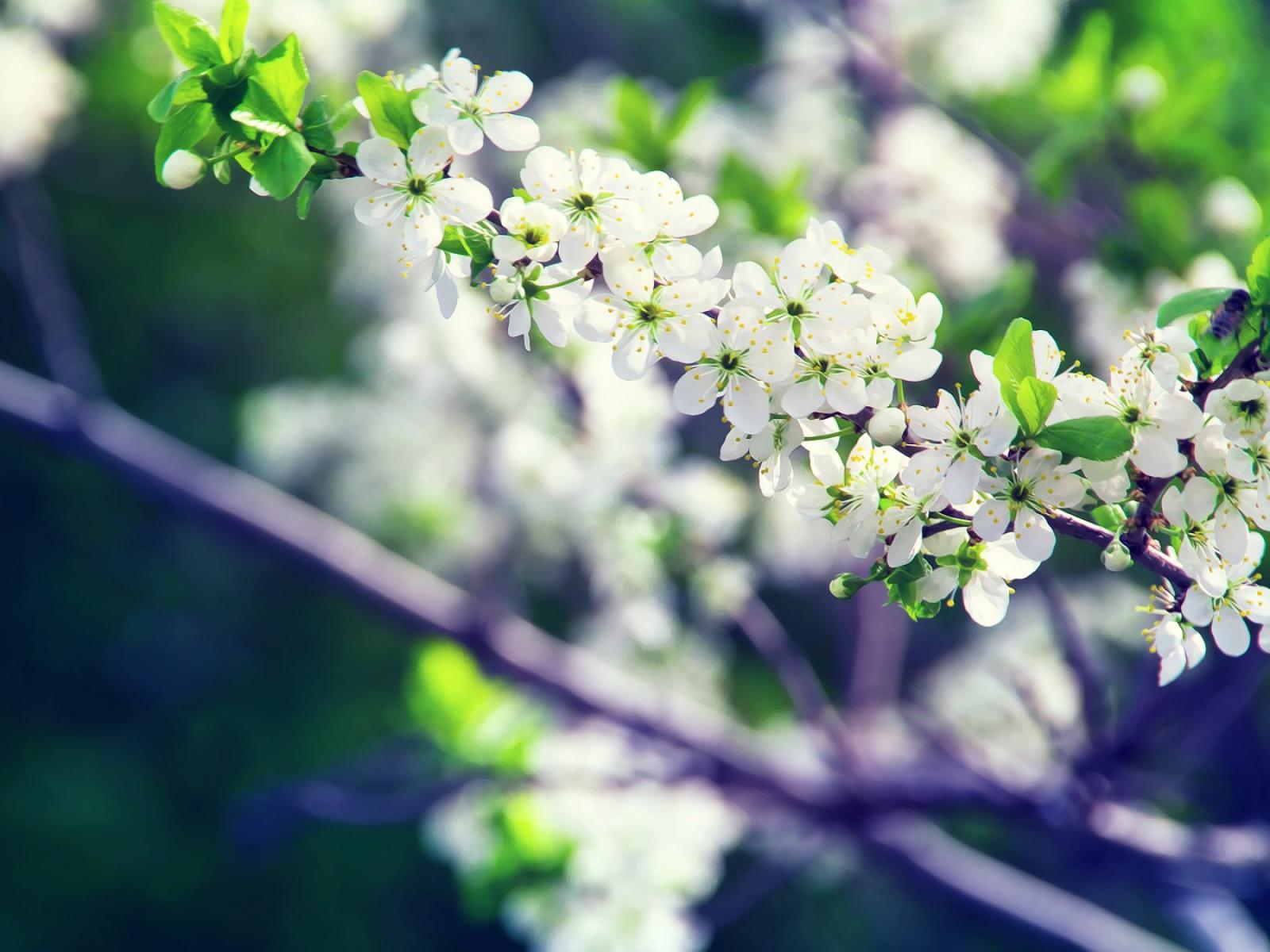 Wallpaper White cherry flowers on a branch close-up