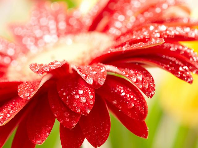 Wallpaper Red gerbera flower with water drops on the petals