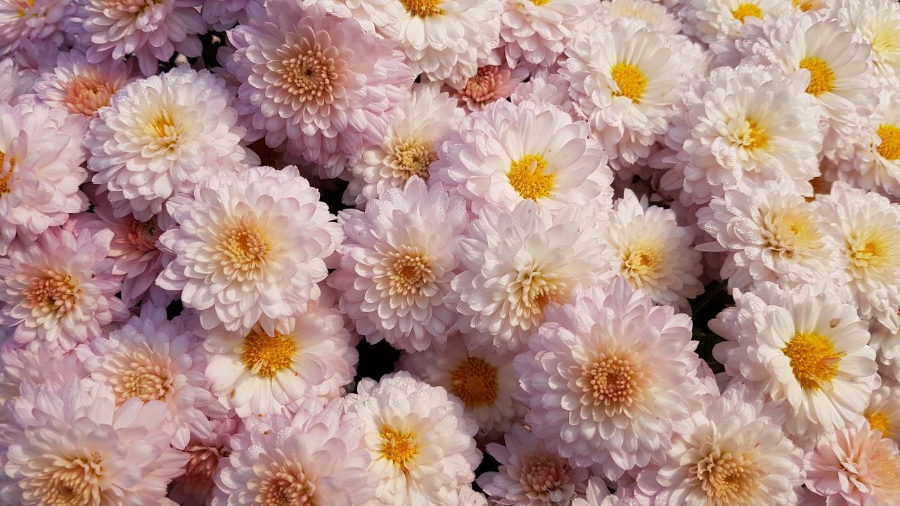 Wallpaper Lots of white chrysanthemum flowers close up