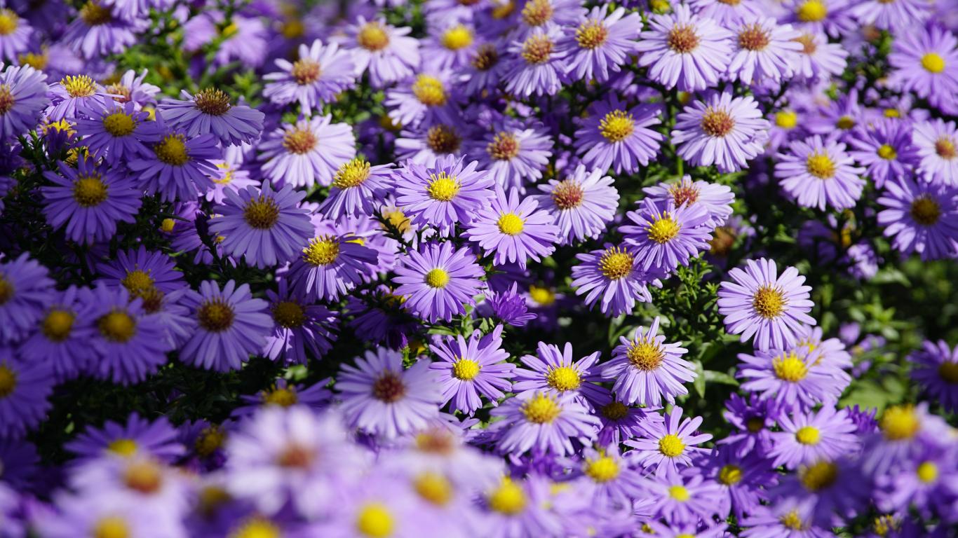 Wallpaper Many lilac flowers of the saintbrinka in the sun