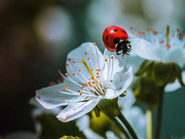 Wallpaper Ladybug sitting on white cherry blossoms
