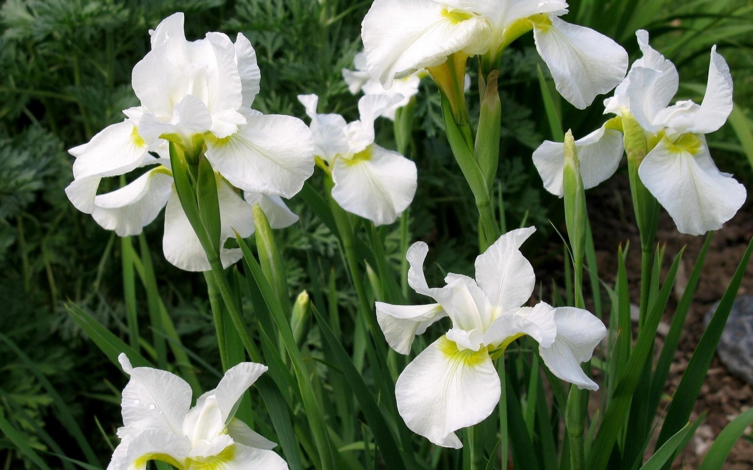 Wallpaper Beautiful white iris flowers on a flower bed