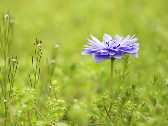 Wallpaper Lilac Anemone flower grows on a field in green grass