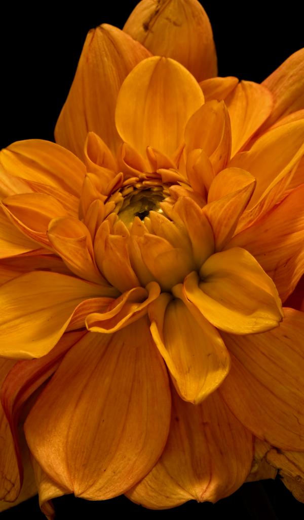 » Wallpaper Orange chrysanthemum flower on a black background close up