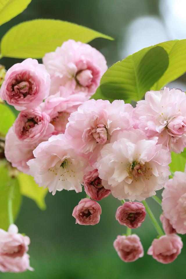 Wallpaper Pink luizeania flowers with green leaves on a branch