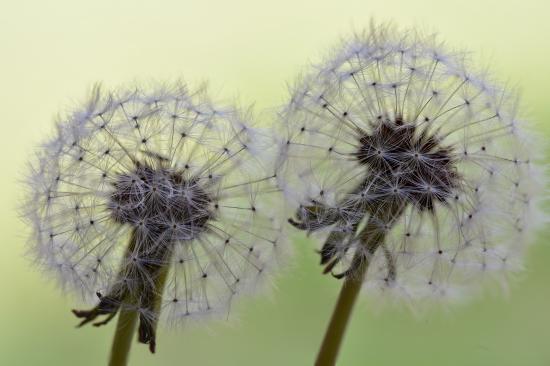 Wallpaper Two white dandelion flowers close up